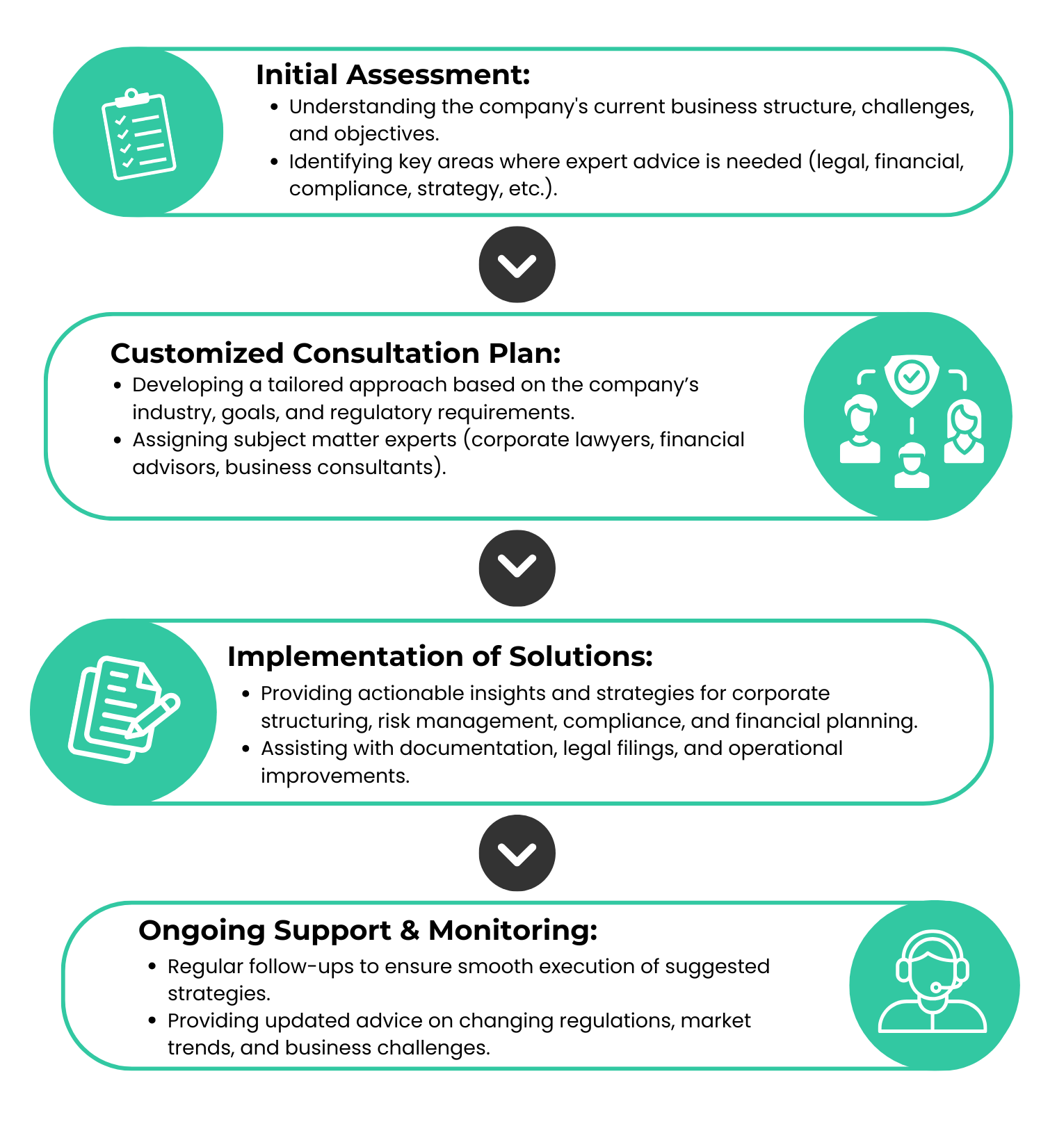 Through this consultation, you gain clarity on business structures, legal documentation, tax planning, and other business related requirements—ensuring your business is set up and operated smoothly, lawfully, and efficiently.