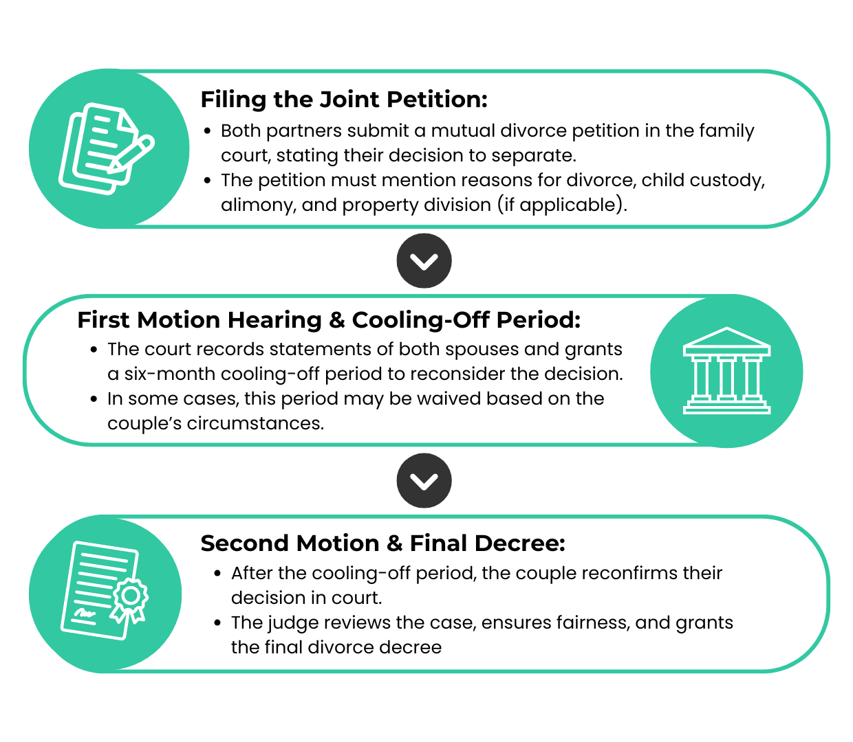 Mutual Divorce Consultation is a professional legal service that helps couples navigate the mutual divorce process smoothly under Section 13B of the Hindu Marriage Act, 1955, or relevant laws applicable to other religions. Mutual divorce occurs when both spouses agree to separate amicably, without lengthy legal battles. A consultation ensures that the couple understands their legal rights, division of assets, child custody arrangements, and alimony settlements, making the process stress-free and efficient.